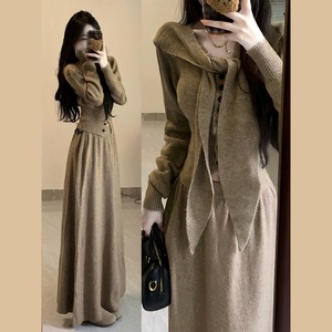 小香风针织毛衣套装连衣裙子女早秋2025新款高级感长裙搭配一整套