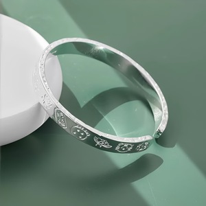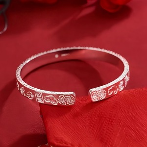 白铜吉言福字古法银手镯年轻款开口复古锤纹实心银镯子女厂家