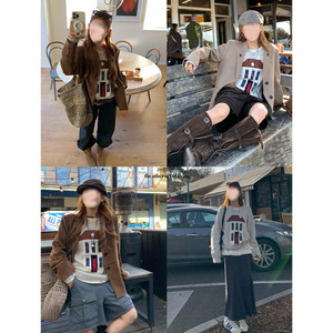 DEEMO “秋日多巴胺”搭配绝绝子趣味撞色房子针织套头毛衣