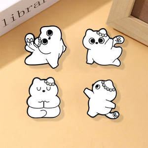 欧美卡通可爱小猫胸针镶钻白色小猫别针徽章衣服固定衣服包包配饰