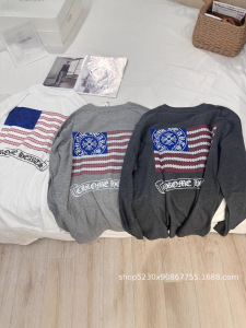 25ss新款ch克罗伈夏季薄款微透后背国旗印花长袖防晒T恤宽松上衣