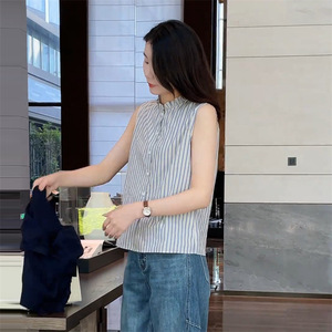 盐系轻熟两件套装秋季新款女款条纹无袖背心搭配开衫圆领针织罩衫