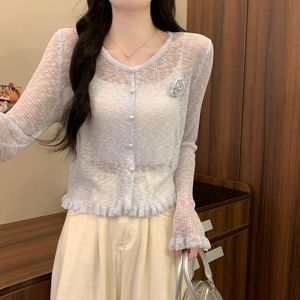 设计感软糯边薄款立体花朵防晒针织衫女春夏新款甜美长袖上衣批发