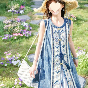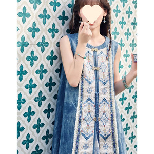 十三余小豆蔻夏日国风日常出街长比肩通勤牛仔国风套装