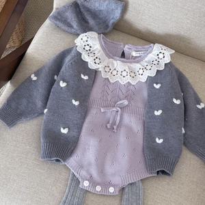春秋婴幼儿精致花边领针主包屁衣哈衣外套2025新款女宝宝连体套装