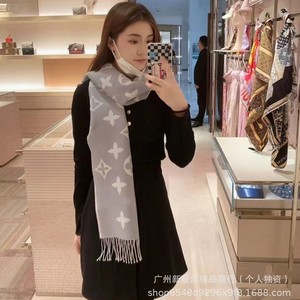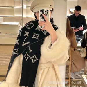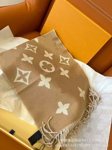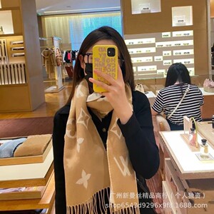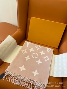 秋冬季新款羊毛围巾女士流苏LOGO披肩双面羊绒干枯玫瑰粉围脖保暖