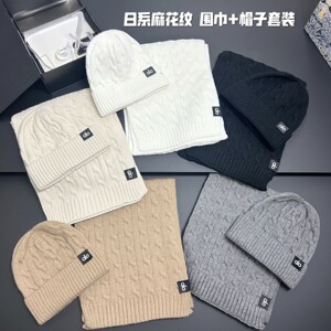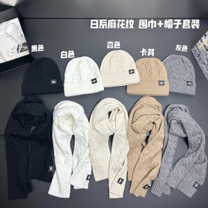 潮牌围巾针织帽套装秋冬新款防寒保暖围巾日系百搭针织帽子男女款