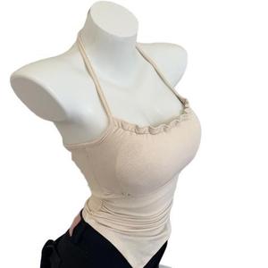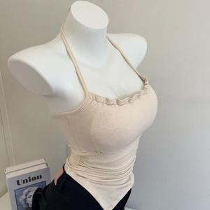 垂涎欲滴!纯欲风边挂脖打底吊带小背心女自带胸垫上衣工厂厂家