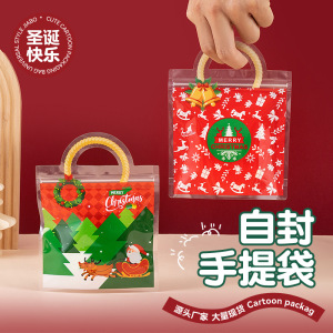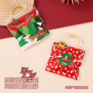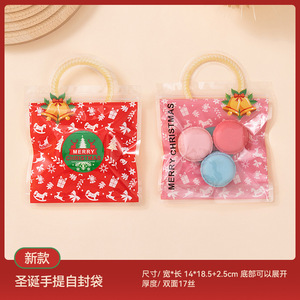 ins跨境加厚卡通圣诞节自封礼品袋透明儿童糖果零食手提礼物包装