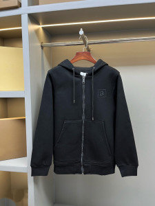 高版本 英伦B家胸前字母刺绣拉链卫衣高定百搭宽松纯色连帽衫外套