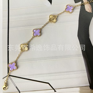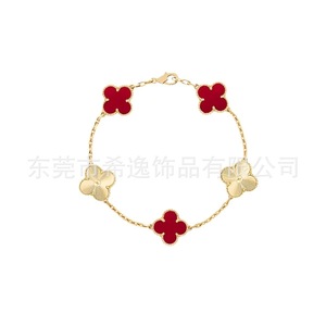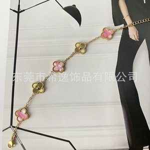 电商爆款钛钢四叶花手链夹批花镭射双面贝母时尚轻奢气质首饰工厂