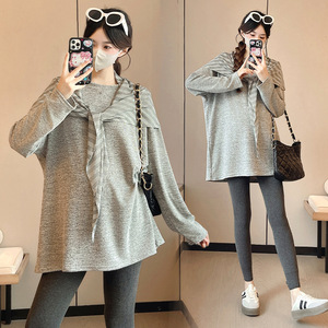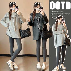 孕妇装秋冬新款休闲宽松简约时尚上衣+条纹披肩韩版潮妈上衣女