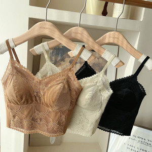 秋冬内搭丝绒磨毛保暖美背吊带背心女打底文胸一体带胸垫抹胸内衣