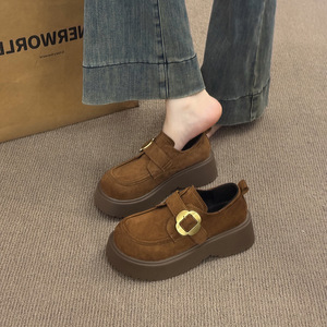 简约风厚底增高乐福鞋女2025秋新款一脚蹬百搭英伦风小众设计单鞋