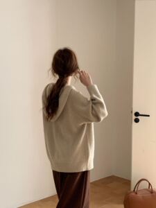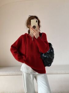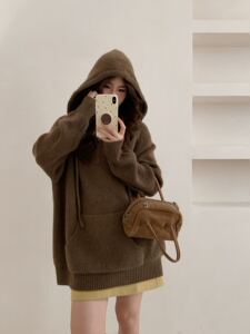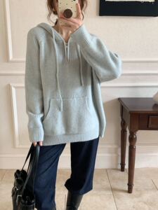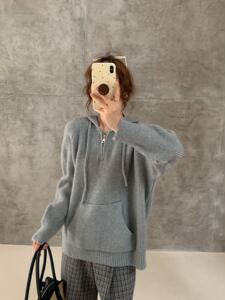 跨境秋冬新款套头毛衣女韩系半拉链连帽休闲慵懒风外穿针织衫上衣