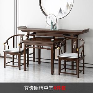 中式实木中堂六件套条案农村堂屋简约明式神台供桌佛台翘头桌条几