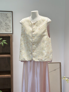 新中式两面穿彩色爱心扣提花国风马夹女浅色系秋季新款上衣外套