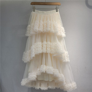 设计感小众蛋糕裙不规则荷叶边仙女裙甜美中长款网纱半身裙