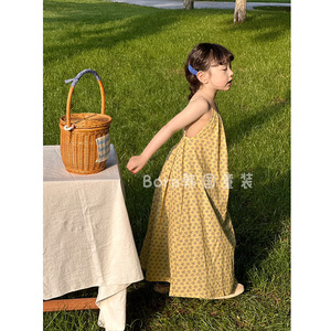 波拉bora韩国女童连衣裙春装中大孩儿童宝宝公主裙子长款吊带裙潮