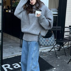 慵懒风灰色领毛衣女2025秋冬新款加厚新品宽松套头针织衫上衣