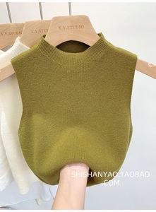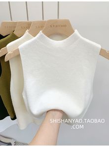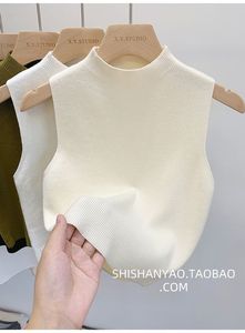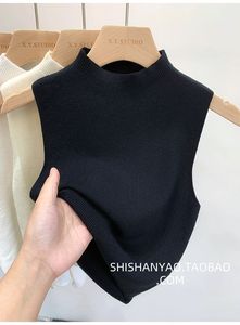 黑色半高领冰丝无袖T恤女夏打底西装内搭背心针织衫修身短款上衣