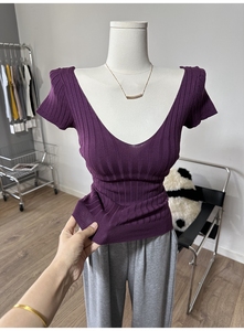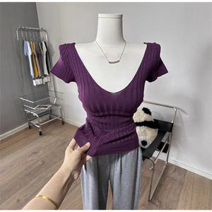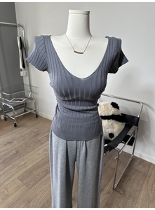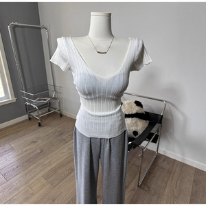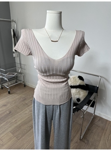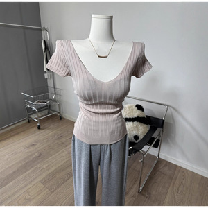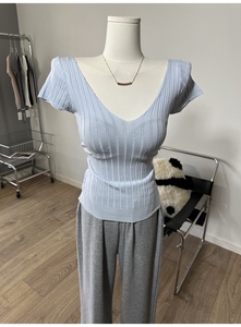 万能选手~ 大V领针织衫修身短款竖坑条打底衫上衣春夏新款