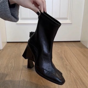 韩版高跟方头瘦瘦靴短靴女粗跟复古马丁靴英伦风短筒单靴
