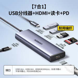 【7合1】USB3.0+USB2.0x2+HDMI+读卡+PD-0.2m