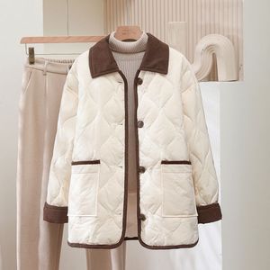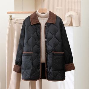 轻薄棉服女2025冬季新款翻领灯芯绒菱格宽松百搭短款保暖棉衣外套