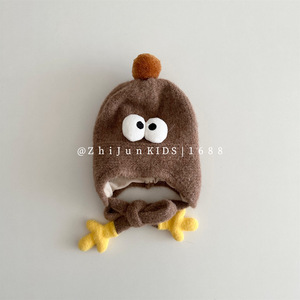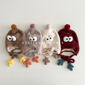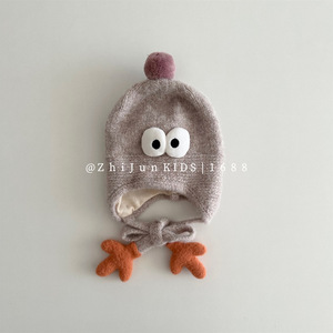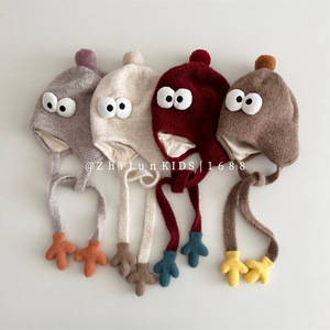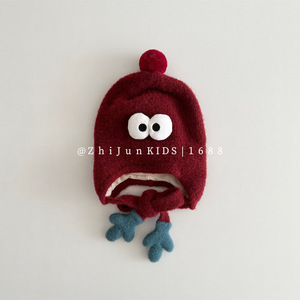 ins可爱宝宝帽子秋冬护耳男女小月龄保暖套头帽超萌大眼睛毛线帽