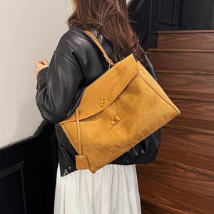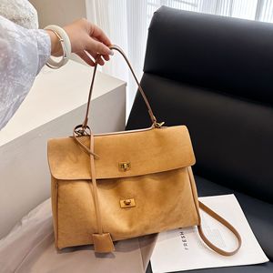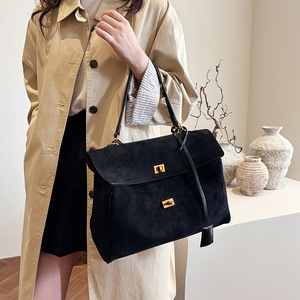 复古大容量手提包女式包2025新款麂皮绒公文包简约单肩斜挎通勤包