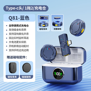 Q81带充电仓 TYPE-C接头 蓝(一拖二圆形磁吸领夹麦+大容量充电仓+降噪+混响)
