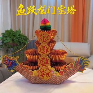 清心钱龙船材料包潮汕龙年中秋拜月娘底座纸塔手工折纸