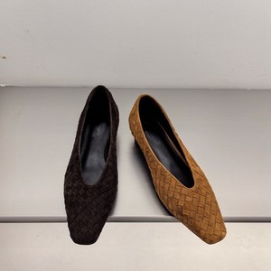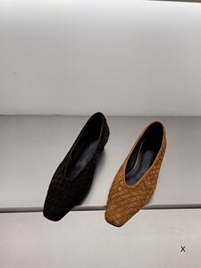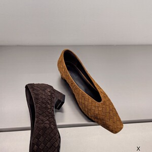 欧洲站XJ女鞋25秋冬简约时尚编织软胎牛反绒皮方头浅口粗低跟单鞋