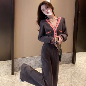 小香风套装女2025秋季新款高级感小众设计拼接开衫阔腿裤两件套