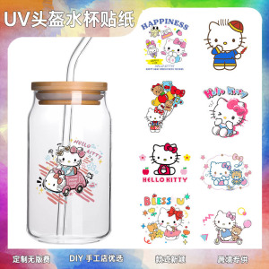 卡通UV转印贴透明水晶标可爱小猫爱心蝴蝶结玻璃杯贴防水装饰贴