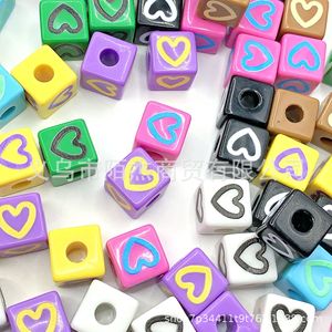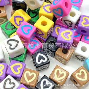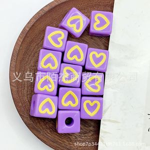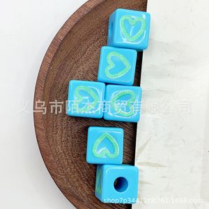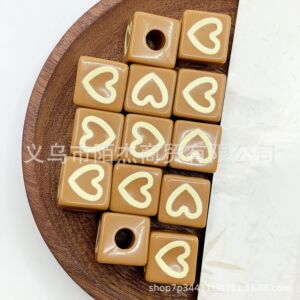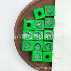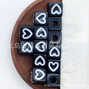 16mm方块爱心印花亚克力散珠DIY手工串珠手机链包挂饰品配件批发