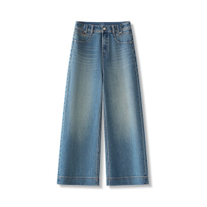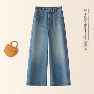 窄版阔腿牛仔裤女高腰显瘦2025年春秋季时尚新款宽垂感百搭直筒裤