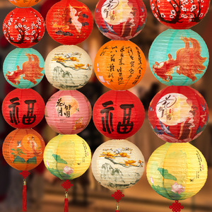 中秋节纸灯笼装饰气氛布置中式复古花灯手提古风商场吊灯多款挂饰