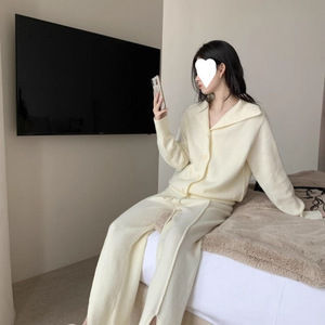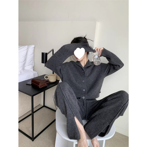 休闲灰色时尚针织套装女秋冬新款韩版宽松慵懒风开叉阔腿裤两件套