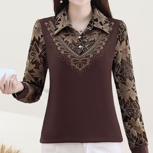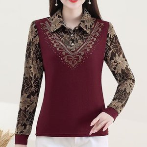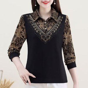 一件代发2025秋季新款时尚拼色洋气烫钻长袖内搭打底衫上衣