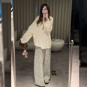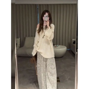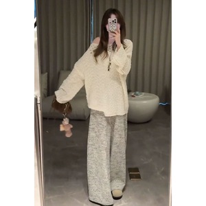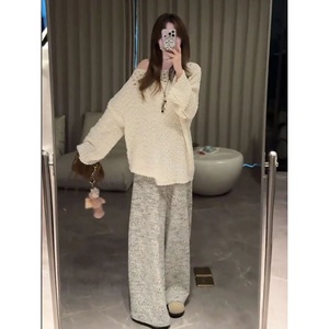 慵懒风宽松镂空针织衫毛衣阔腿裤套装女2025秋冬新款两件套感