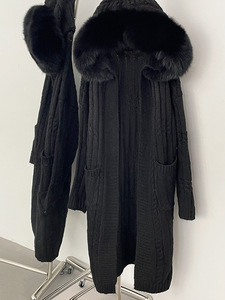 25新款真狐狸毛领长款毛衣外套女慵懒风秋冬穿搭加厚针织开衫外套