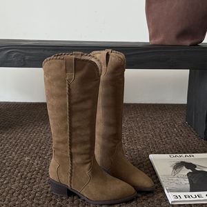 MARCO&JOYCE2025新款磨砂皮尖头粗跟长靴子复古西部靴韩版中跟高
