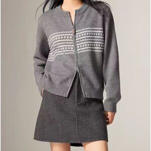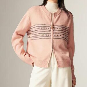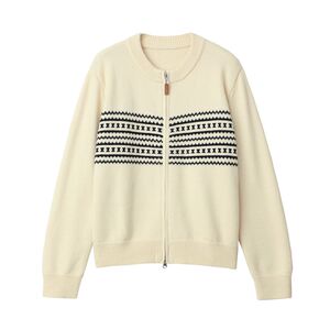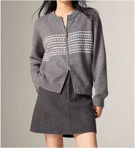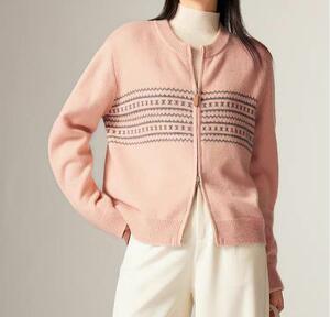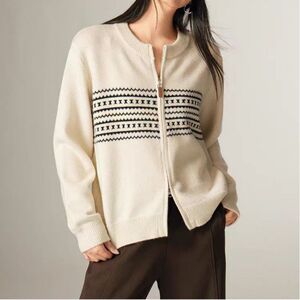 针织开衫条纹圆领新款拉链拼色提花毛衣外套上衣设计外套女春秋款
