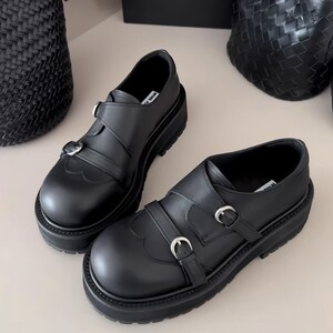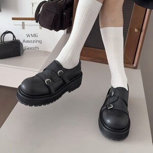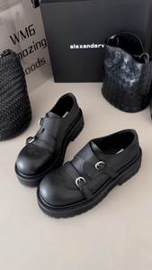 WM6欧洲站女鞋25秋时尚软头层复古蜡感牛皮圆头平底英伦风乐福鞋