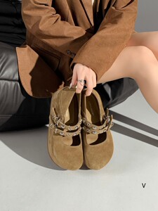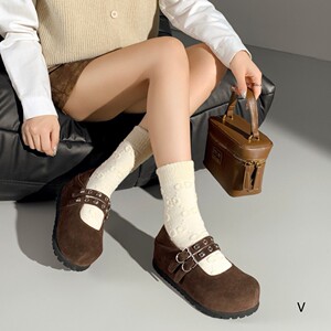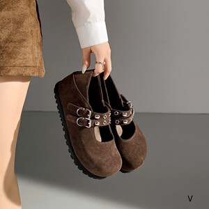 欧洲站女鞋25秋冬时尚踩跟一字带软牛猄皮圆头休闲平底玛丽珍单鞋