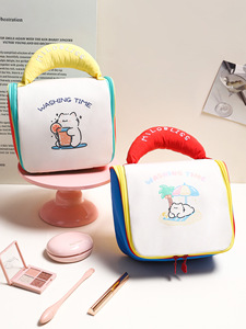 可爱撞色手提化妆包大容量高颜值分类收纳包少女旅游百搭洗漱包