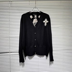 正确版CH克罗秋冬新款十字架金属刺绣针织衫开衫毛衣男女款一件发