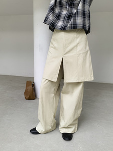 广州十三行2025秋韩风棉质假两件拼接叠搭设计感直筒休闲裤03050